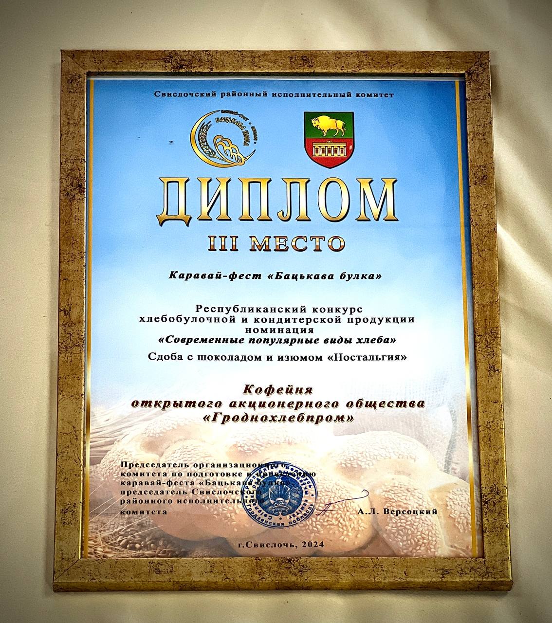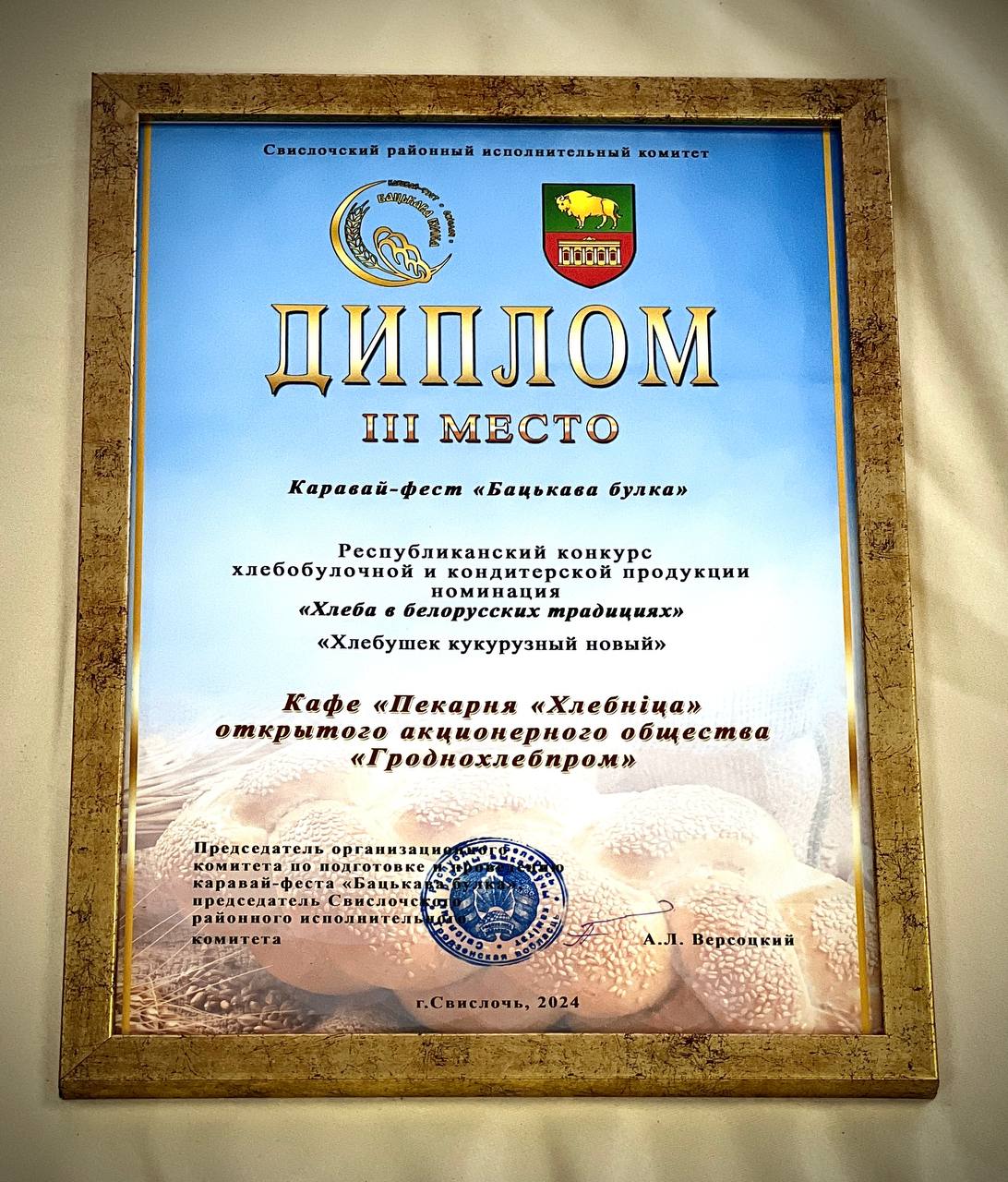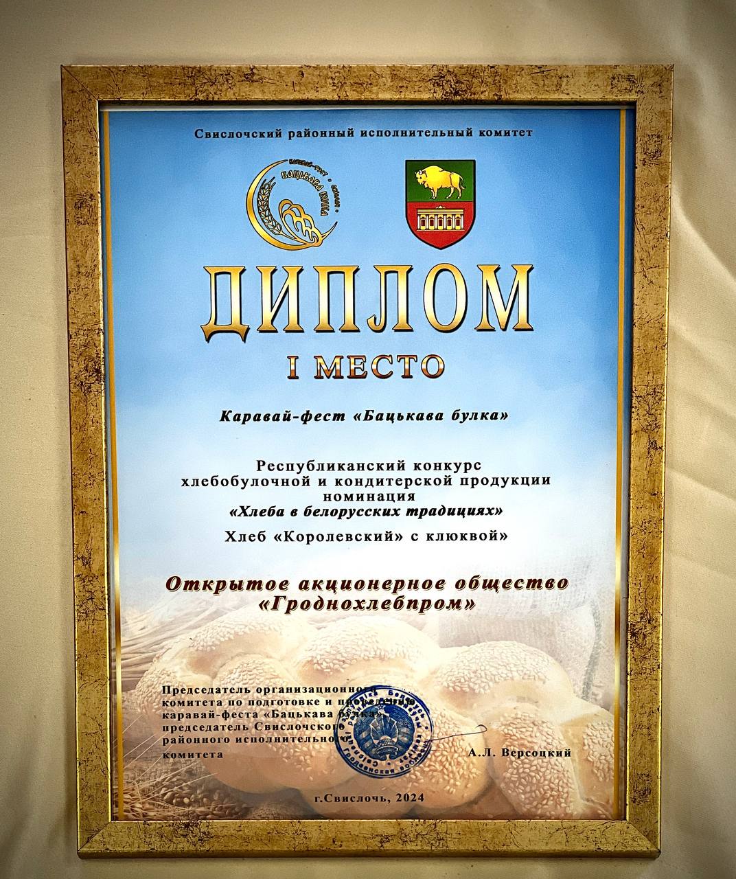 ОАО «Гроднохлебпром» не обошло стороной Республиканский конкурс хлебобулочной и кондитерской продукции, главная цель которого – популяризация национальных белорусских традиций приготовления хлебобулочных и кондитерских изделий, формирование современной культуры производства и потребления хлебобулочных и кондитерских изделийВ номинации «Хлеба в белорусских традициях» первое место у хлеба «Королевский» с клюквой, третье – у «Хлебушек кукурузный новый». В категории «Современные популярные виды хлеба» первое место занял хлебец «Сила льна» плюс, третье – сдоба с шоколадом и изюмом «Ностальгия». Второе и третье место в номинациях «Национальные хлеба» и «Кондитерские изделия» заняли лаваш «Гарадзенскi» и бисквит «Сюрприз» соответственно. Первое место в номинации «Здоровое питание» досталось пирогу «Кукурузный со шпинатом». Изделия, которые участвовали в конкурсе изготовлены не только производственными цехами, но и в пекарнями «Хлебніца» ОАО «Гроднохлебпром».