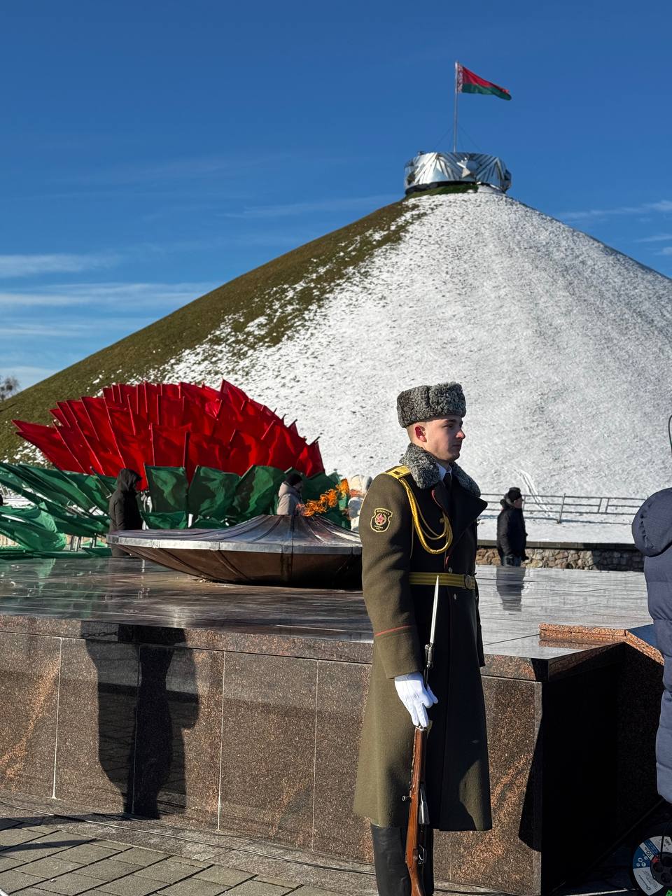 В Гродно в честь Дня защитников Отечества и Вооруженных Сил Республики Беларусь на Кургане Славы прошла торжественная церемония возложения цветов и венков к Вечному огню.