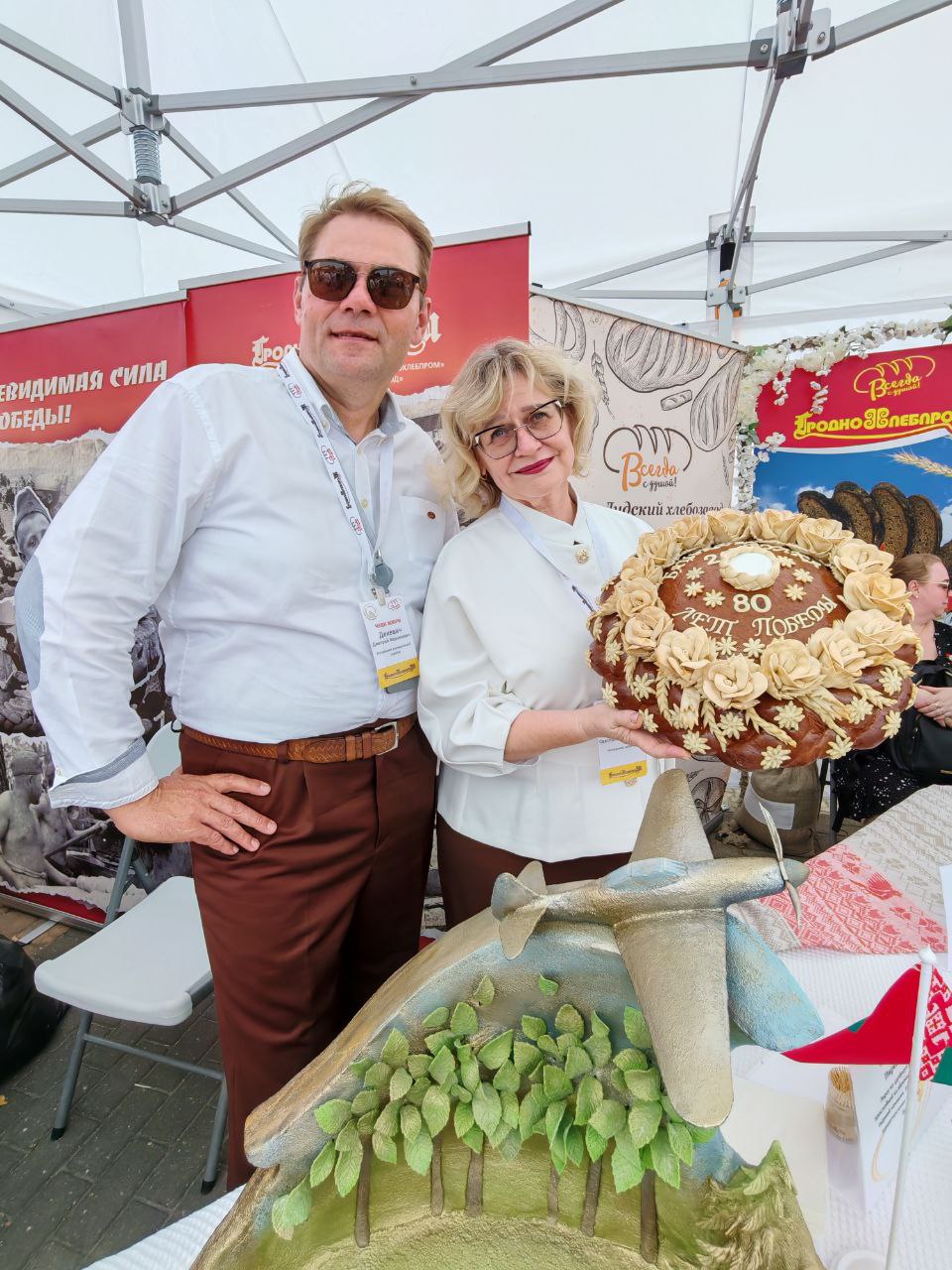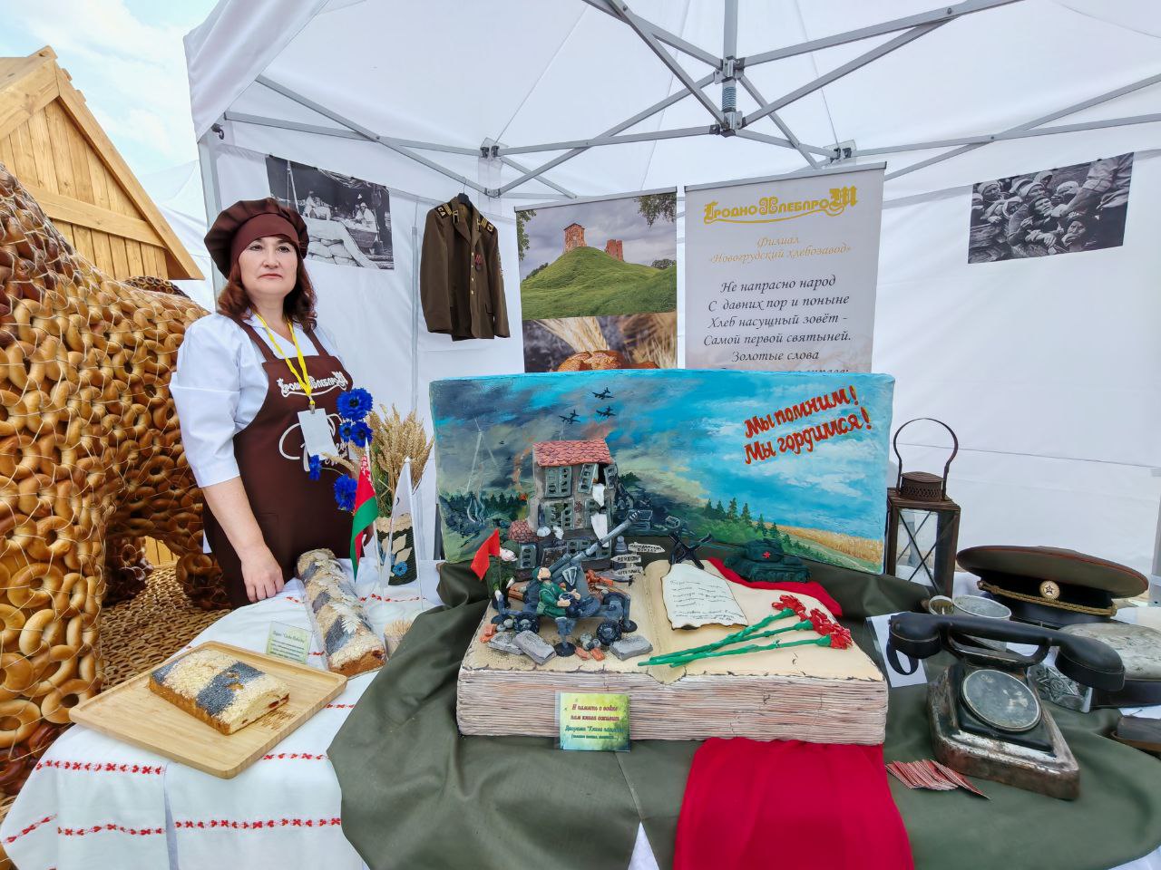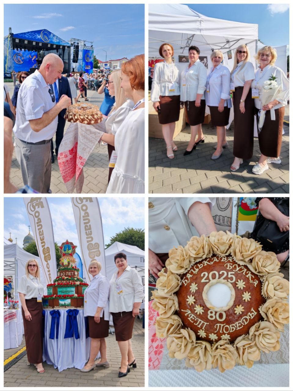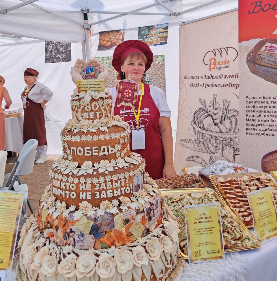 В четвертый раз уникальный каравай-фест «Бацькава булка» собрал людей, чтобы вместе насладиться вкусом каравая из нового урожая и прикоснуться к богатым традициям. Яркой точкой на празднике стала выставочная площадка ОАО «Гроднохлебпром». Здесь прошел конкурс хлебобулочных изделий «Бацькаўшчына», в котором приняли участие филиалы и производственные цеха предприятия. Каждое изделие здесь — это не просто хлеб, а настоящее произведение искусства, наполненное историей и душой. 6 участников конкурса отобразили в своих работах тему 80-летия Победы, показали любовь к родной Беларуси и ее истории. Победители получили заслуженные награды. Дипломы III степени присудили Ольге Зданович, пекарю-мастеру филиала «Слонимский хлебозавод» и Светлане Ширма, пекарю филиала «Лидский хлебозавод». Дипломов II степени удостоили Татьяну Кравчук, машиниста техноразделочных машин филиала «Новогрудский хлебозавод» и Александру Ковалевич, формавщика теста ОАО «Гроднохлебпром». Дипломом I степени наградили Наталью Азевич, пекаря-мастера Лидского хлебозавода. Самой высокой наградой – Гран-при конкурса – жюри отметило труд Евгения Гаравского, представившего ОАО «Гроднохлебпром». Он же по результатам голосования был удостоен специального диплома «Приз зрительских симпатий».